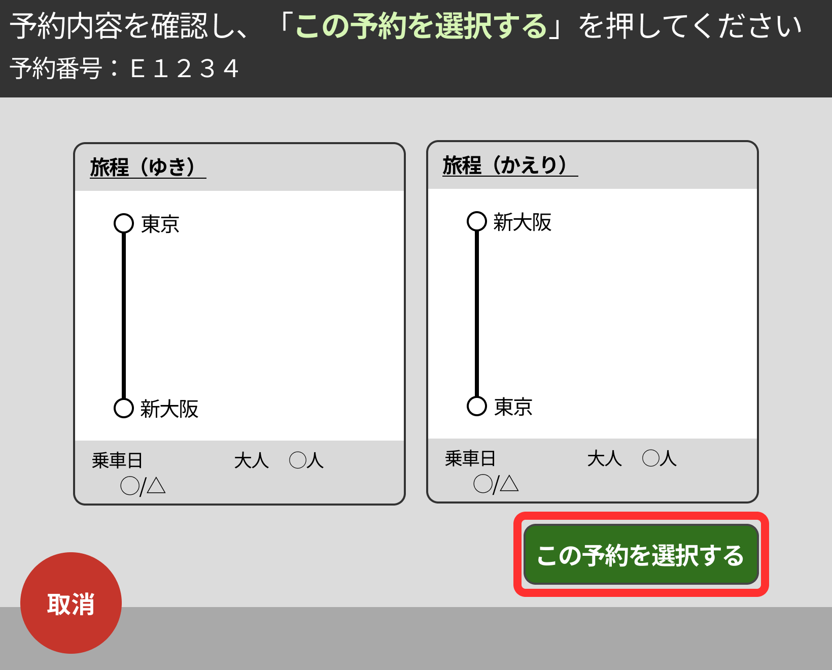 予約内容をご確認のうえ、「この予約を選択する」ボタンを押してください。